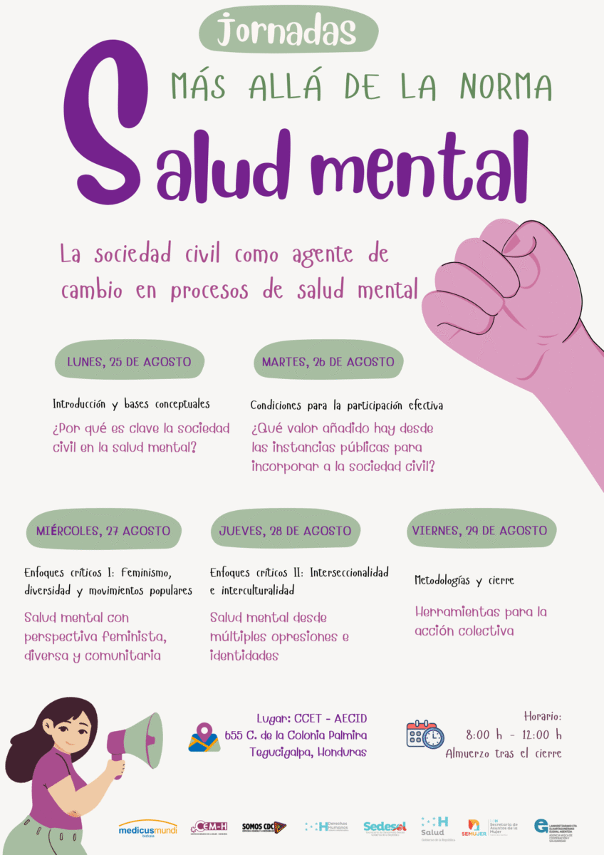 2025eko abuztuaren 25etik 29ra Tegucigalpan “Arauetatik harago. Gizarte zibila osasun mentaleko aldaketa eragile gisa” jardunaldia ospatuko da. Bertan gizarte zibilak osasun mentaleko prozesuetan modu eraginkorrean parte hartzeko dituen estrategiak aztertu eta sustatuko dira, ikuspegi kritikoak integratuz (feminista, intersekzionala, kulturartekoa eta komunitarioa).